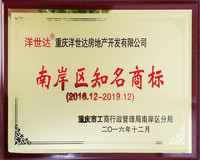 2017年1月 ,“洋世達”商標獲得重慶工商行政管理局南岸區分局頒發的南岸區知名商標稱號