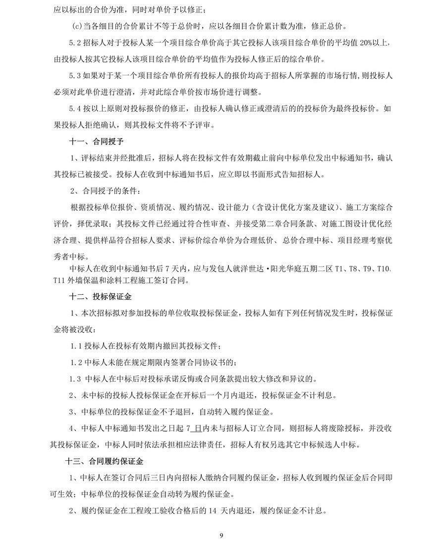 洋世達·陽光華庭五期二區外墻保溫和涂料工程招標