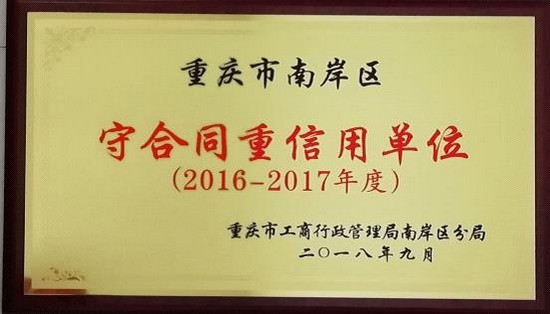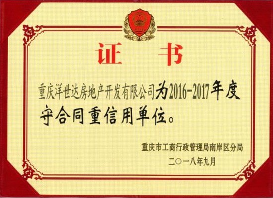 重慶洋世達房地產開發(fā)有限公司榮獲南岸區(qū)2016-2017年度守合同重信用單位”稱號