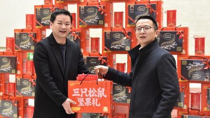 活動現場,年貨禮品堆積成了一面厚重的“祝福墻”。