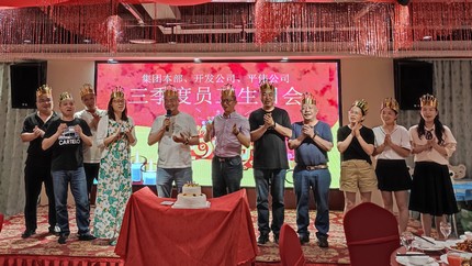 2021年7月15日下午,集團本部、房產公司、平偉公司的全體同仁歡聚一堂,為三季度過生日的12位同事,共同慶祝生日。