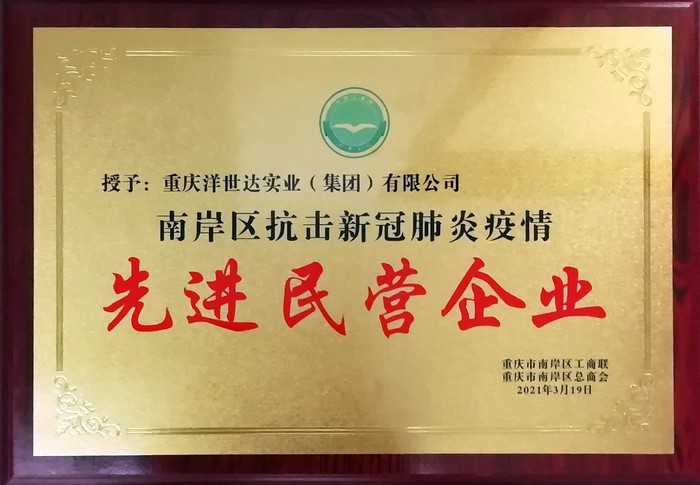 重慶洋世達實業集團有限公司榮獲抗擊疫情先進會員稱號