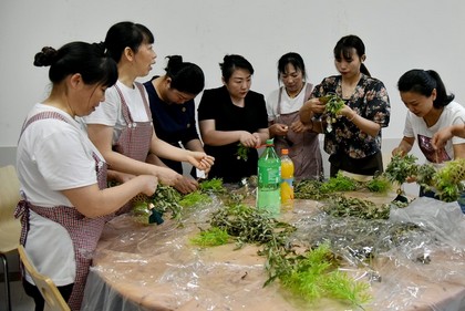 活動現場,同事們圍在桌邊。手工材料包中,新鮮的艾草、輕巧的竹編、金色的鈴鐺、五彩的流蘇,寄托著大家濃濃的端午祝福。只見,同事們靈巧的雙手在竹編和艾草間來回穿梭,大家一邊相互交流一邊認真制作掛件。不一會兒,一個個精致美觀的艾草掛件就紛紛成形。一縷縷艾草清香沁人心脾,現場歡聲笑語不斷。