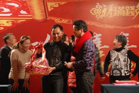 殺年豬是中國傳統的過年方式之一,本次春節年拜會特將其融入互動游戲環節,在綠陽農業園區新鮮宰殺了一頭年豬作為獎品。通過抽取幸運員工競猜重量,贏得年豬豬肉,滿載而歸。抽幸運、贏福氣,大家充分參與其中,現場一片歡騰、喜慶!
