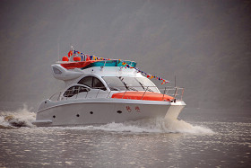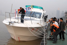 2010年11月11日16:50時,隨著清脆的笛音、參觀人群的歡呼聲、照相機(jī)的咔嚓聲,重慶市有史以來自主建造的最大規(guī)格豪華游艇--“躍浪”順利停靠在南濱路驕陽游艇俱樂部游艇碼頭。