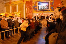 在進行兩個多小時的自由活動后,晚上五點半,大家團聚在一起,舉行了熱烈、喜慶的迎新春團年晚宴。集團公司董事長、總裁楊勇先生發表了熱情洋溢的新春賀辭,并為全體員工派發紅包。大家舉起酒杯,共同分享過去一年成功的喜悅,暢談2008年的美好前景,感受家庭般的溫馨和傳統節日的快樂,盡興而歸。