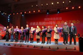 慶祝大會結束后,進行了精彩的文藝演出。演出分為夢想起航、成就夢想、放飛夢想三大篇章,展現了洋世達集團十年成長的風雨歷程,表達了全體洋世達人的喜悅之情,共同祝愿集團公司10周歲生日,并在未來的日子里再創新的輝煌。伴隨著集體大合唱的歌聲,文藝演出完美謝幕。隨后,舉行了答謝晚宴。整個10周年慶典活動取得圓滿成功!