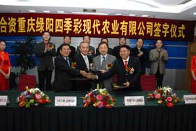 2007年11月12日,重慶洋世達(dá)集團(tuán)下屬子公司與日本二十一世紀(jì)農(nóng)業(yè)株式會社等共同成立的中日合資企業(yè)--現(xiàn)代農(nóng)業(yè)有限公司成立簽約儀式在重慶南岸區(qū)正聯(lián)大廈隆重舉行。