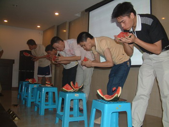 座談會上,集團公司領導通報了公司有關工作情況,并向大家表示節日的祝賀。大家紛紛表示,要干好本職工作,決不辜負領導的厚望。 隨后,進行了軍歌大家唱和吃西瓜比賽。個個拿出看家本領,掌聲、歡笑聲、吶喊聲、加油聲此起彼伏,將整個活動推向了高潮。