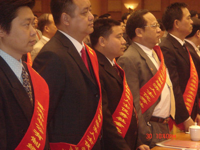 5月30日,中共重慶市委、市人民政府在“渝州賓館”隆重召開“重慶市非公有制經(jīng)濟人士優(yōu)秀社會主義事業(yè)建設(shè)者”表彰大會。市委書記汪洋發(fā)表重要講話,王鴻舉、黃奇帆、邢元敏等市領(lǐng)導(dǎo)參加會議,為獲獎?wù)哳C獎并合影留念。全市共128位非公有制經(jīng)濟人士受到市委、市政府表彰,集團公司董事長、總裁楊勇同志(下右圖左數(shù)第三位)獲獎。