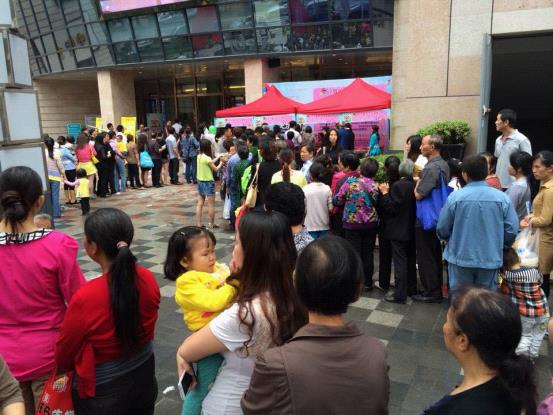 更值得一提的是“快樂6.1傘傘童星”買贈活動,該活動具體內容為:憑世紀廣場當天任意小票即可獲得精美兒童雨傘1把,每人限領一把,每天數量1000把,贈完為止。活動當天,送傘區域就已被圍得水泄不通,一撥又一撥的顧客紛紛潮涌而至,現場一度爆棚,不到3個小時,兒童花傘就已經橫搶一空 。